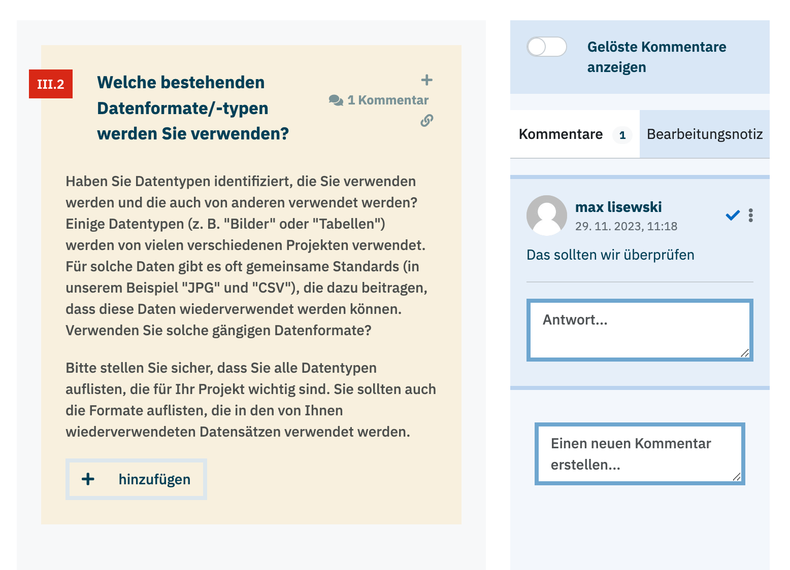 Credit: DLR, CC BY-NC-ND 3.0Sie können über die Kommentarfunktion Hinweise und Nachrichten einfügen, die jede beteiligte Person lesen kann. Darüber hinaus können Personen mit Bearbeitungsrecht eine persönliche To-Do-Liste erstellen.
